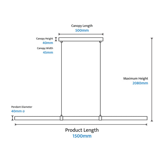Calibo Aquila 1500mm Timber Tubular LED Linear Pendant with Brass Finish Collar - Black Ash with Black