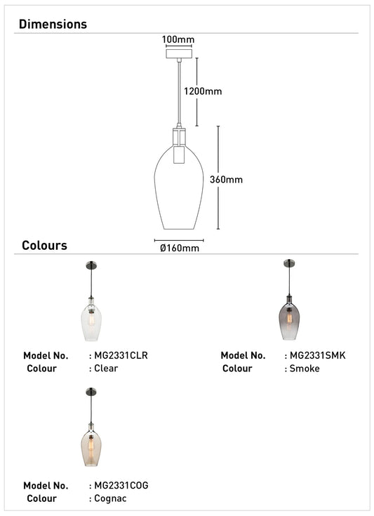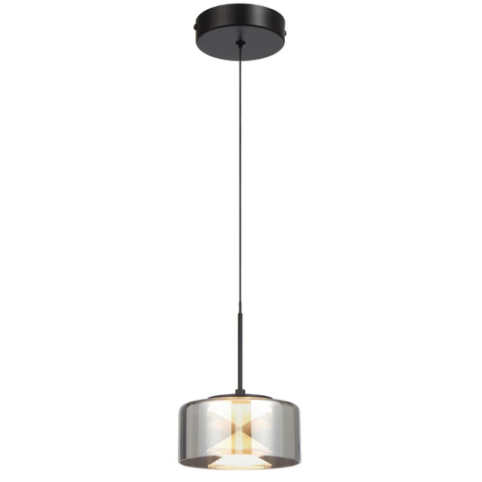 Calibo Avian Vintage Diamond Cut Glass Pendant- Gold With Smoky Glass