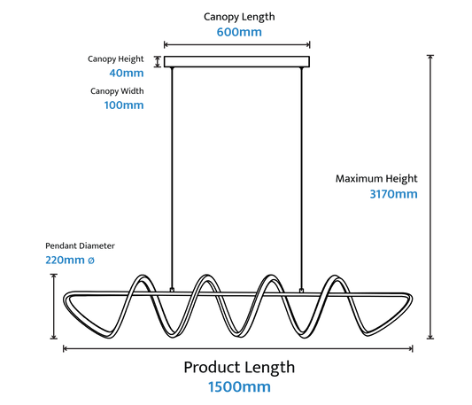 Black Spiral Linear Pendant Light 1500mm – Kitchen Island | Bulbul