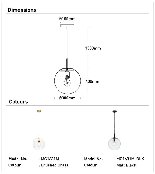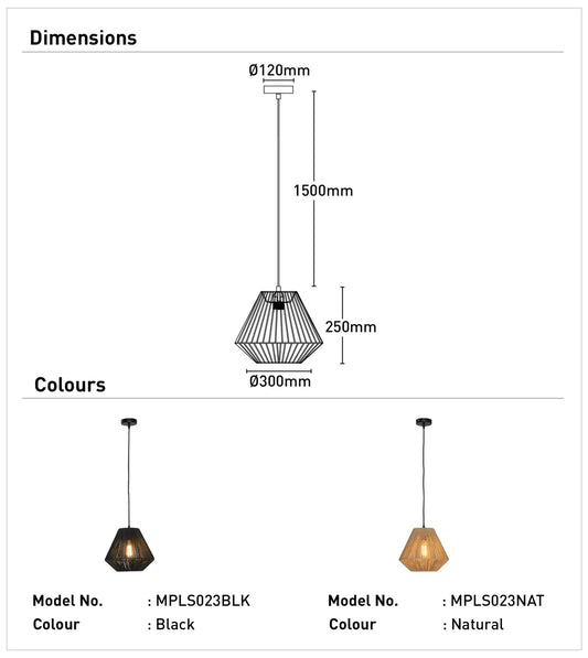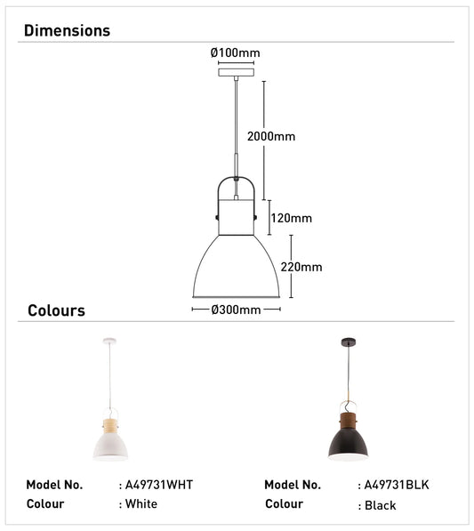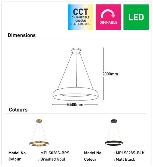 Medine 1Lt Large LED with Remote Pendant Light-Black