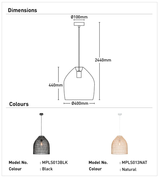 Amsfield Rattan Pendant Light, Teardrop Shade