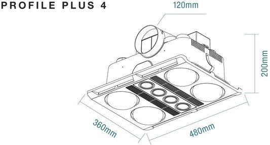 Profile Plus DC 4 3-in-1 Bathroom Heater with 4 Heat Lamps, Exhaust Fan and GU10 LED Light