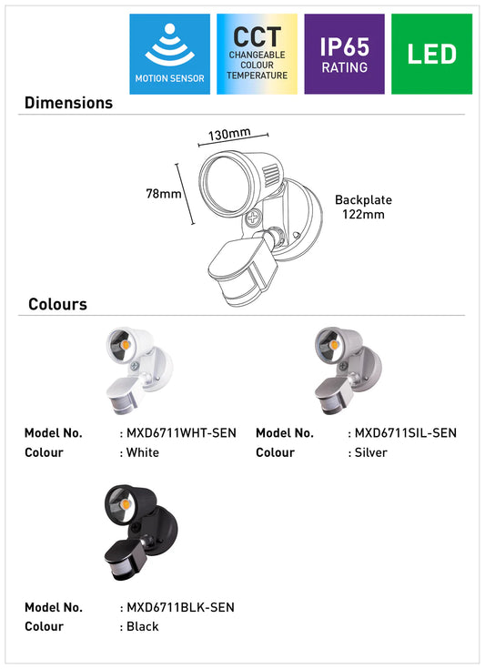 Martec Patrol 20W Tricolour LED Floodlight with Sensor