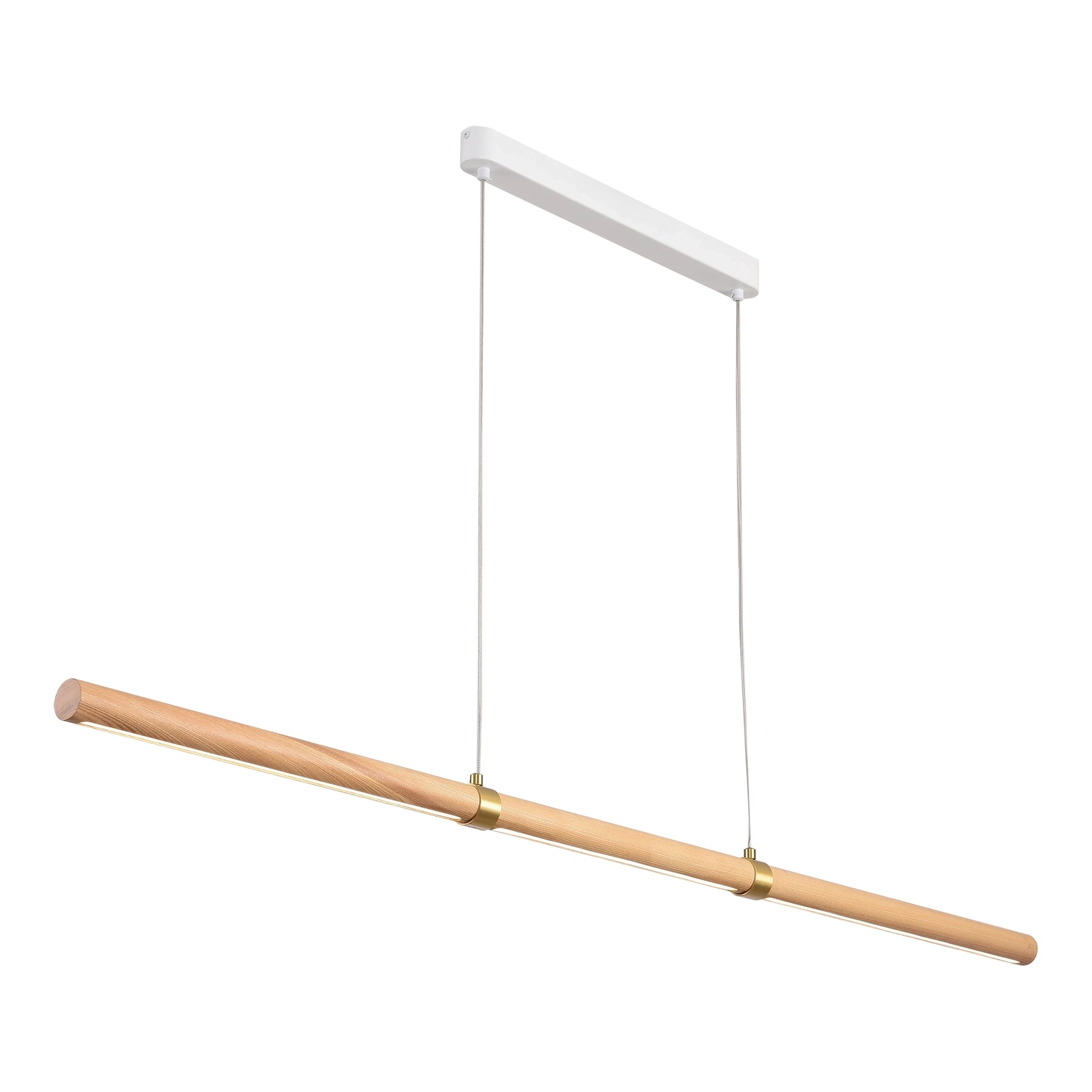 Calibo Aquila 1500mm Timber Tubular LED Linear Pendant with Brass Finish Collar - Ash with White