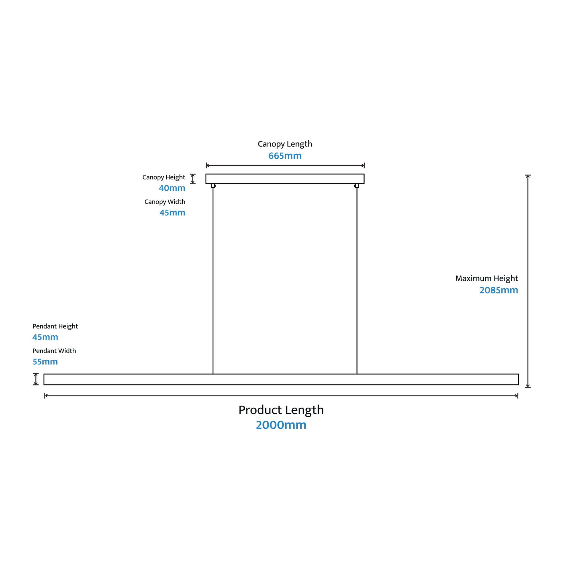 - Max hanging height: 2085mm
