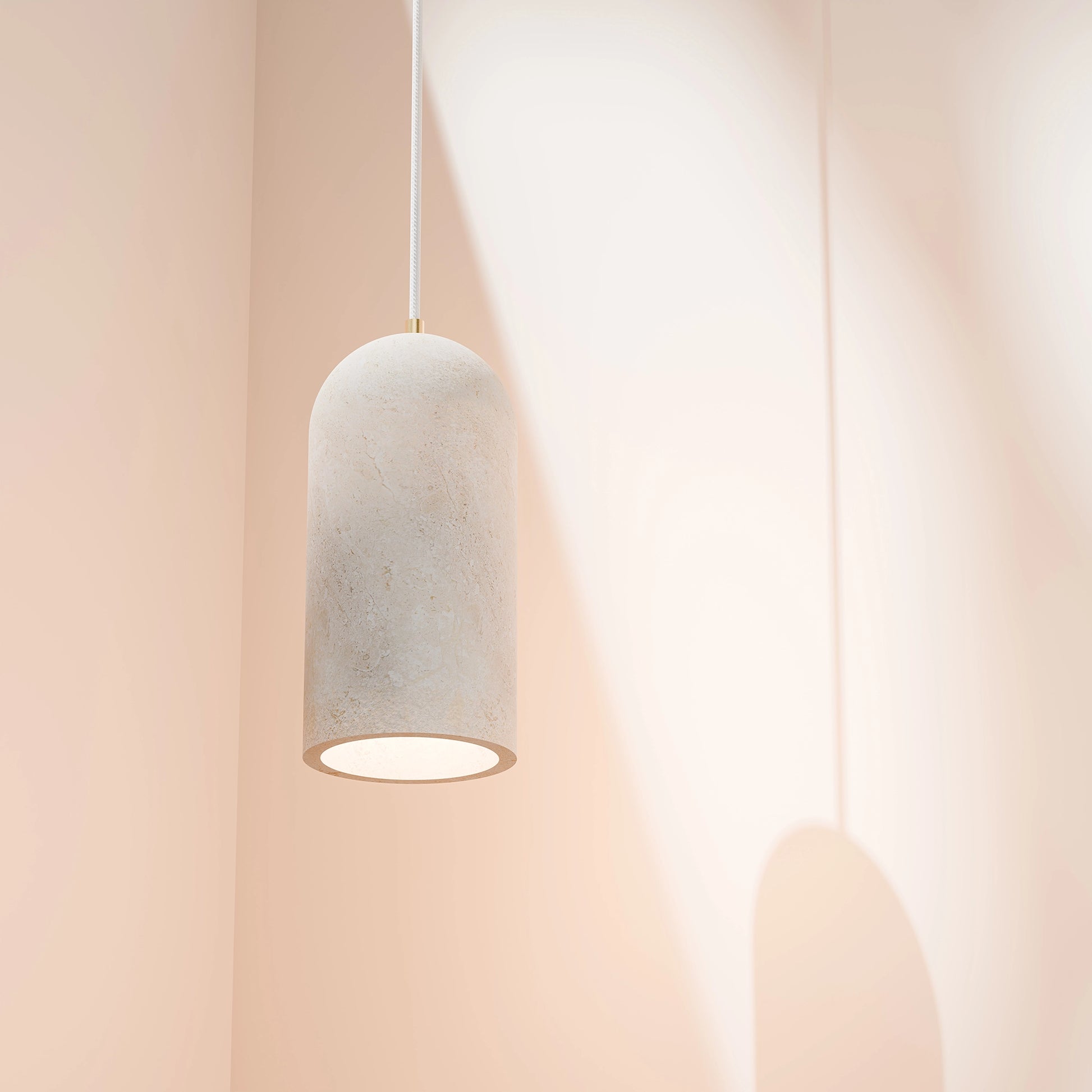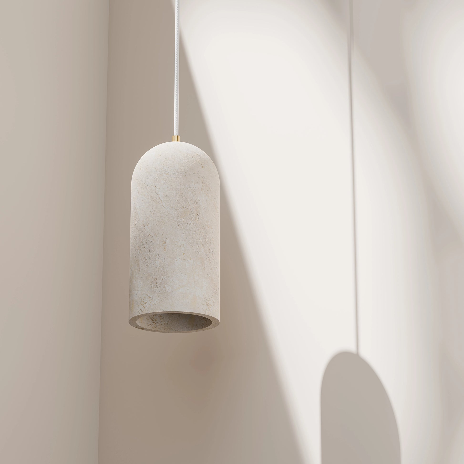 Calibo Inspire Crafted Travertine Round Top Cylinder Pendant Light - Beige