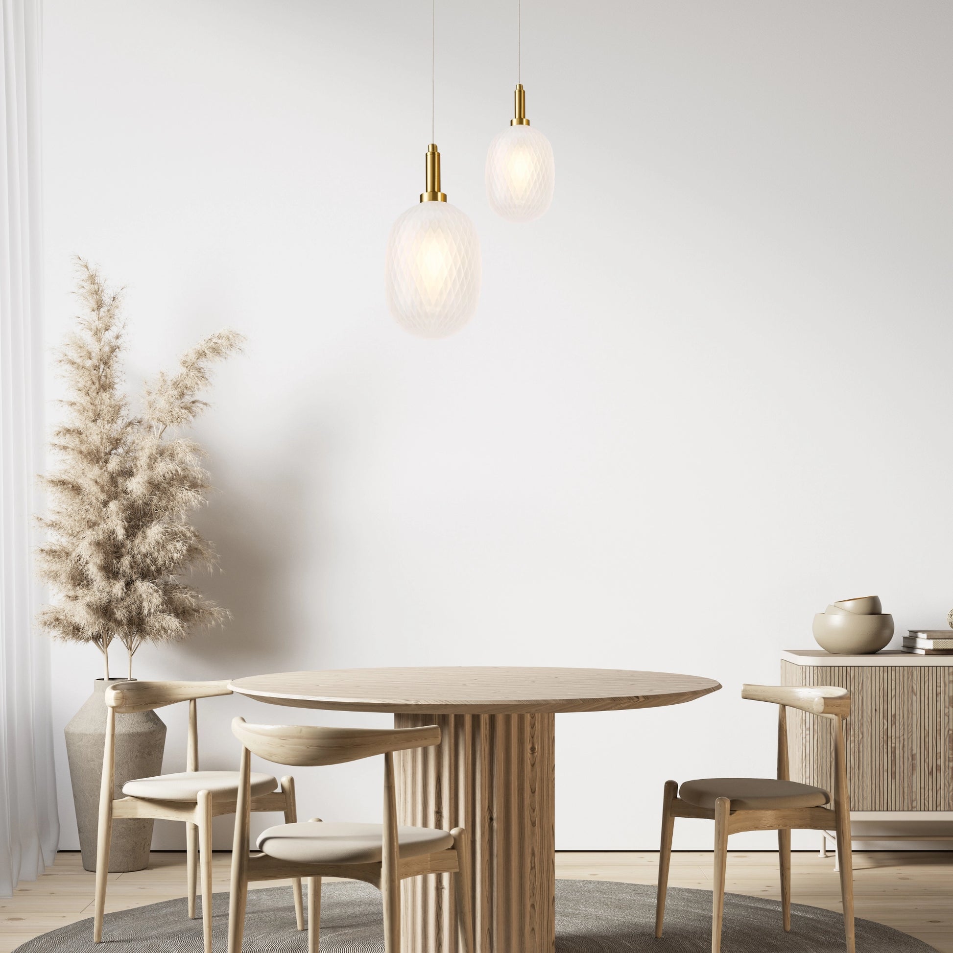 Designed to hold an E14 globe with a maximum wattage of 60W, the Lark pendant provides soft, ambient lighting that adds warmth and style to your home. Its sleek, diamond-patterned glass creates a beautiful interplay of light and texture, making it a true statement piece.