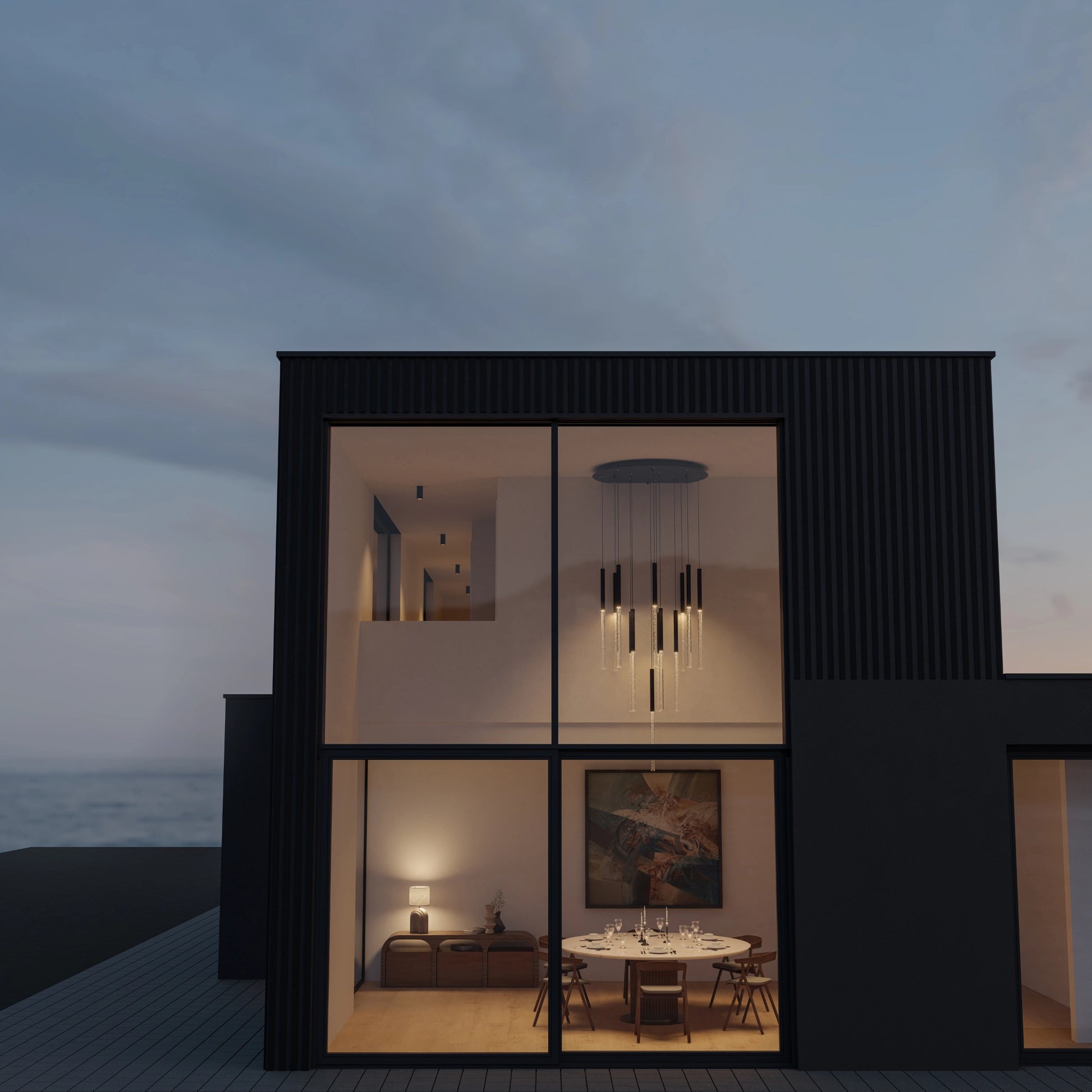 Calibo Rhea 14 Light Pencil Drop LED Pendant - Black