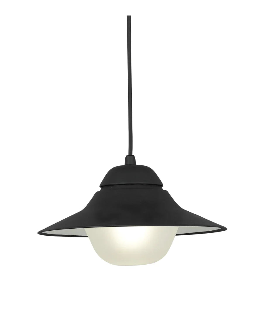 Description: PENDANT ES Matt Blk SUN HAT IP44 OD340mm Frosted Diff